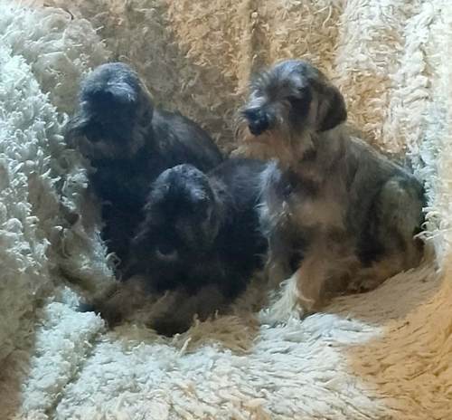 Leglo patuljastih šnaucera biber-so, mužijak i ženke.